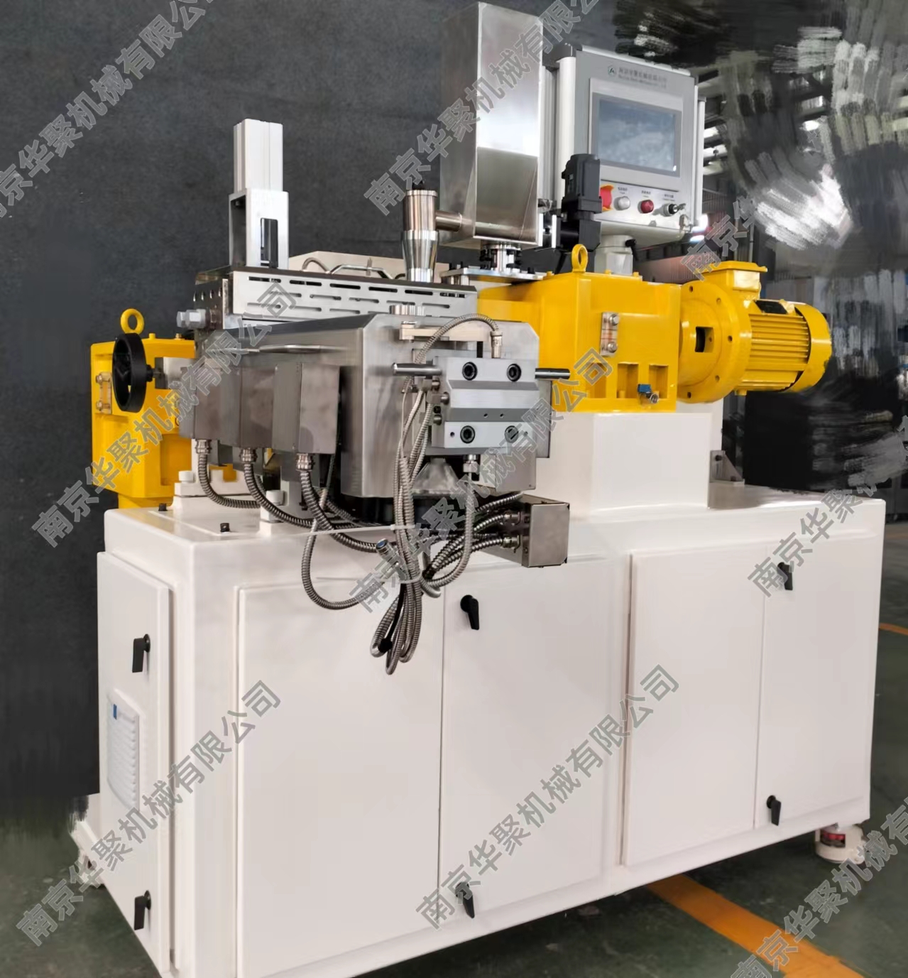 1、占地面積小,主機長寬高為1600X1350X1650mm,帶有移動腳輪。 2、集成連續(xù)密煉與雙螺桿的優(yōu)勢特點,連續(xù)式擠出,方便各種研發(fā)測試使用。 3、能耗低,裝機裝機功率22KW,實際操作功耗更低,類似一臺中央空調(diào)功率。 4、產(chǎn)量范圍1-10Kg/h,方便少量物料測試,伺服電機喂料驅(qū)動更穩(wěn)定精確。 5、一體化設(shè)計,電控冷卻系統(tǒng)全部集成,無需額外安裝,接電即用。 6、連續(xù)密煉機可翻轉(zhuǎn)腔體和雙螺桿快開機頭設(shè)計,方便清理及檢查維護。 7、全系統(tǒng)安全連鎖,觸摸屏操作,多處安全停機保護,使用更放心。 8、整機1噸,方便裝卸。